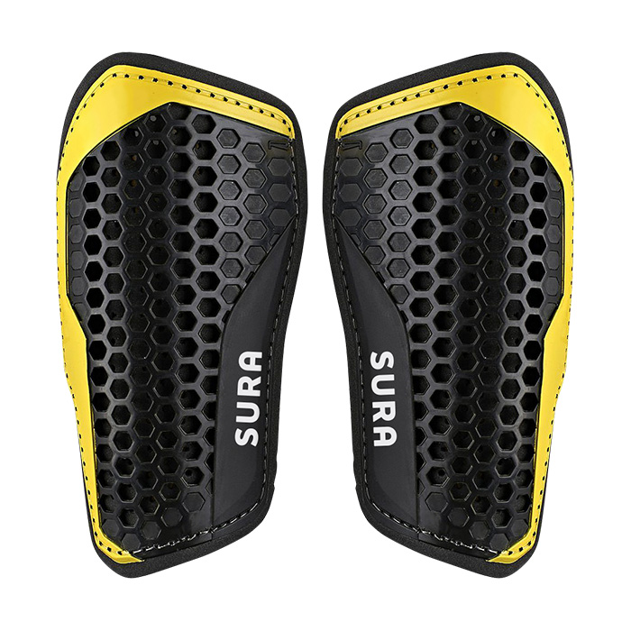 Футбольные щитки Sura созданы для профессиональных игр. Ультратонкий материал идеально повторяет контуры голени игроков, а подложка из воздухопроницаемой пены ЭВА обеспечивает максимальную защиту от травм и амортизацию ударов.